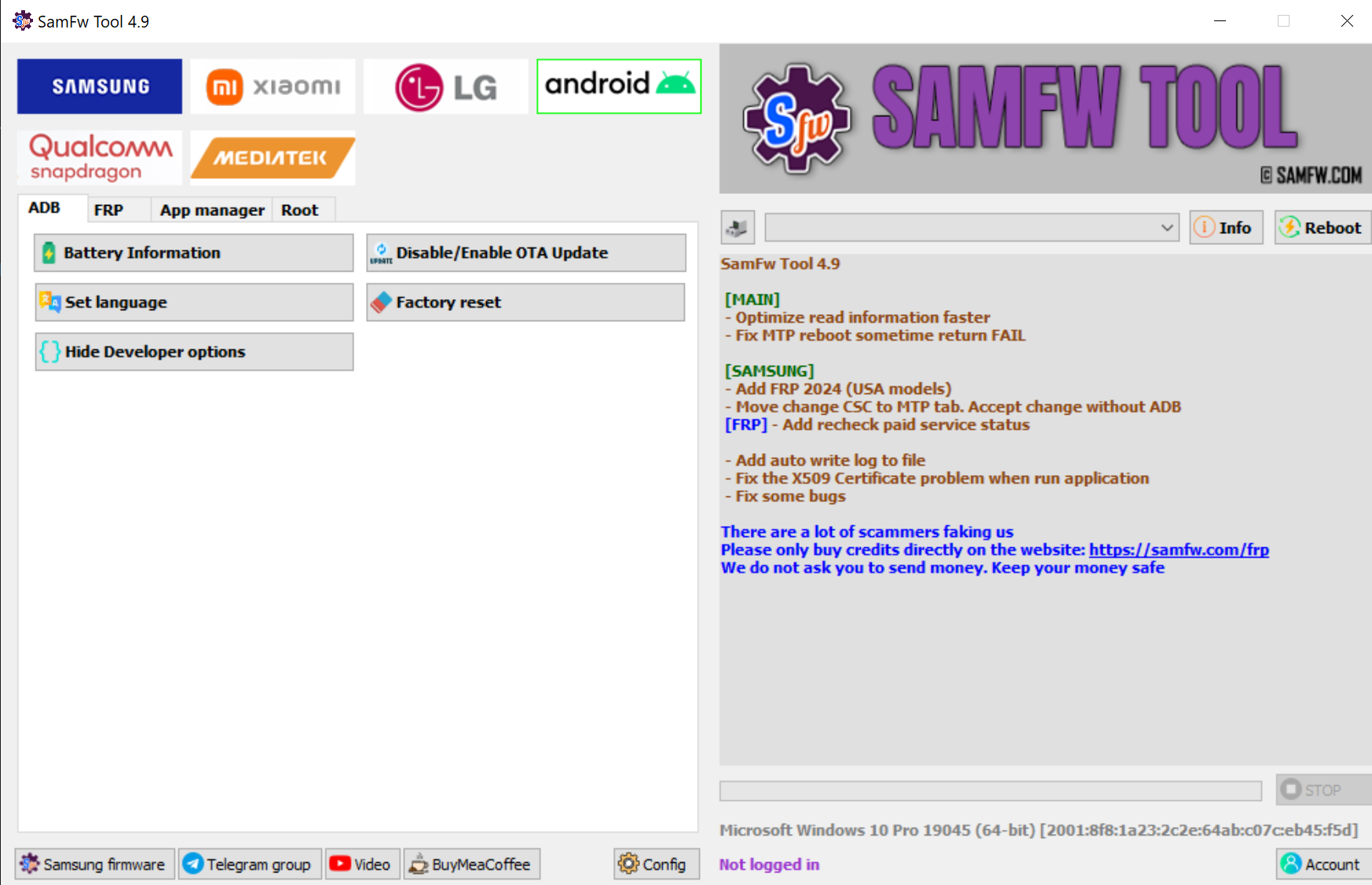 Tags: samfw tool 4.9, samsung frp bypass tool, samsung frp remove with one click,how to download and install , samsung frp bypass android 13/12/10/9 one click, new update android 13 fix failed to enable adb by test mode