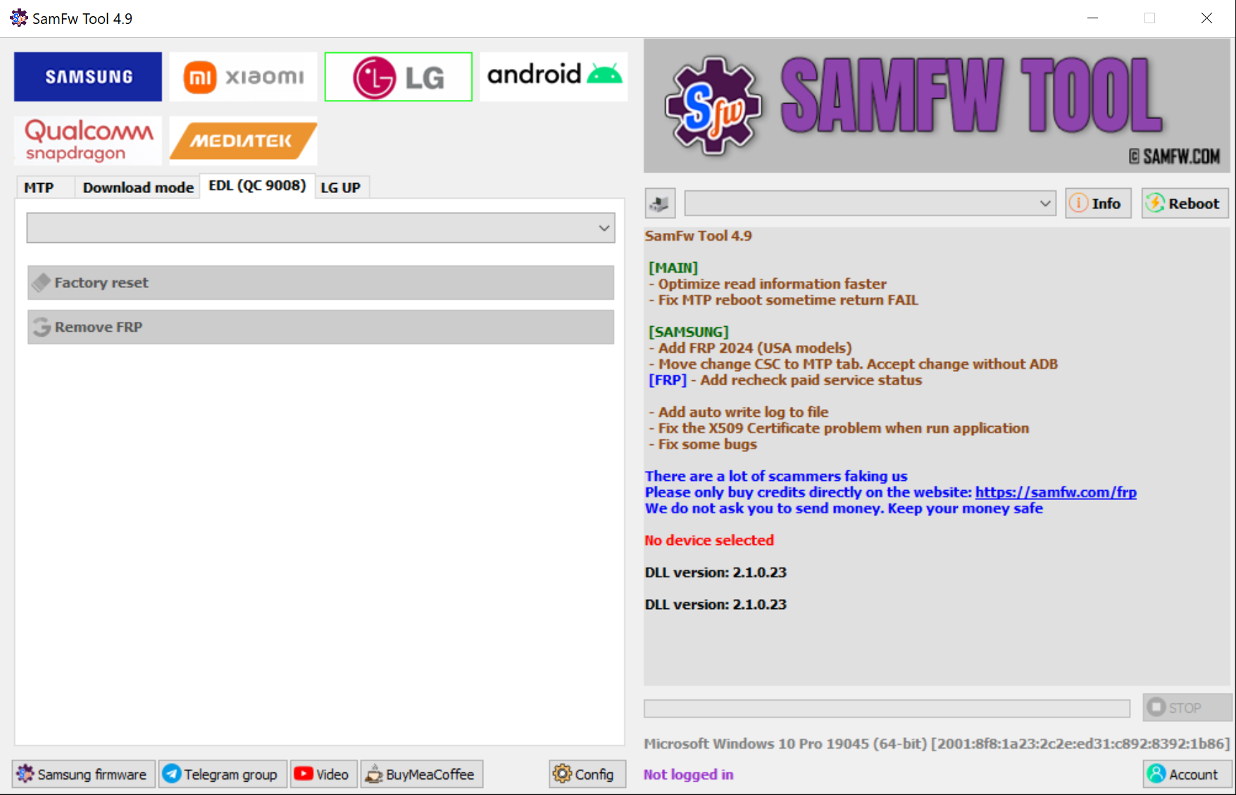 - Remove FRP EDL (QC 9008) Support (LG G7, G8, G8X, G8S, V30, V40, V50, V50S, Q6, G5, G6, V20, V35, V60)